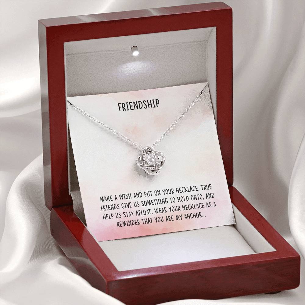 "Make a wish and put on your necklace. True friends give us something to hold onto and help us to stay afloat. Wear your necklace as a reminder that you are my anchor..."