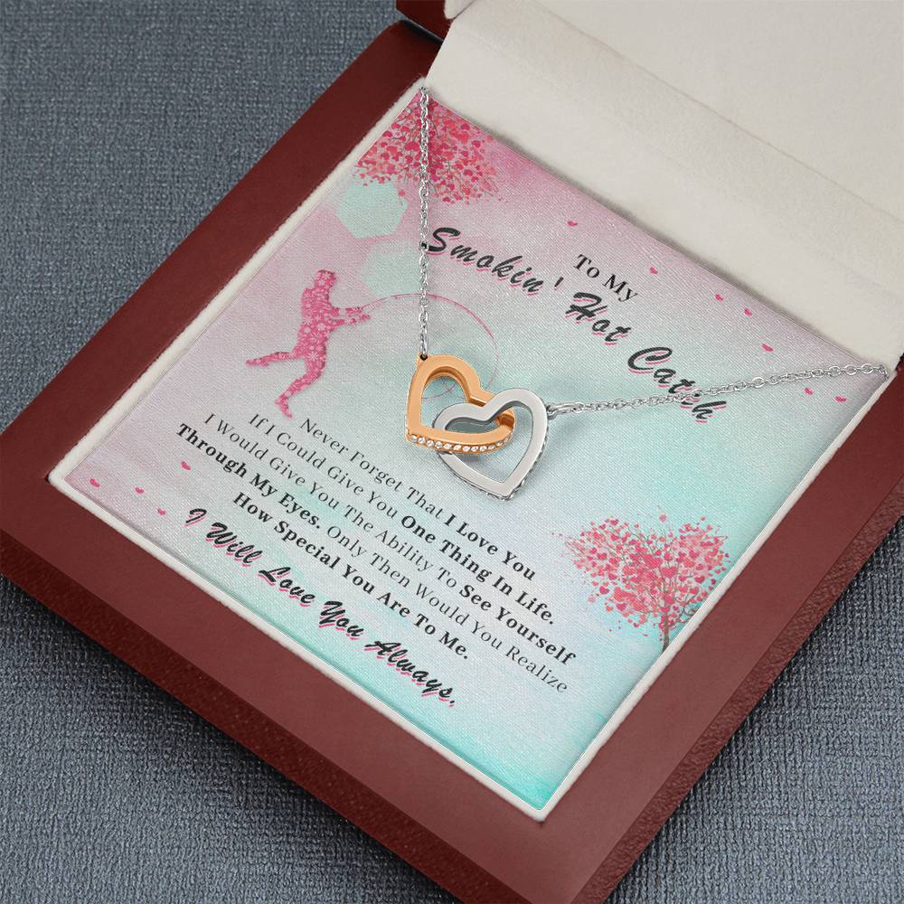 Two hearts embellished with Cubic Zirconia stones, interlocked together as a symbol of never-ending love. Made with high quality polished surgical steel. Cable chain measures 18 inches with a 4 inch extension, and fastens with a lobster clasp.