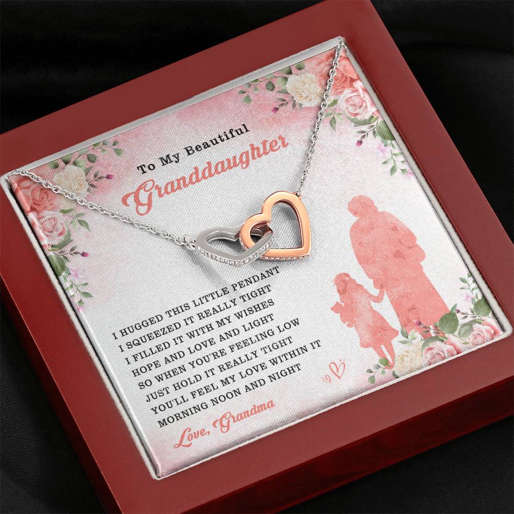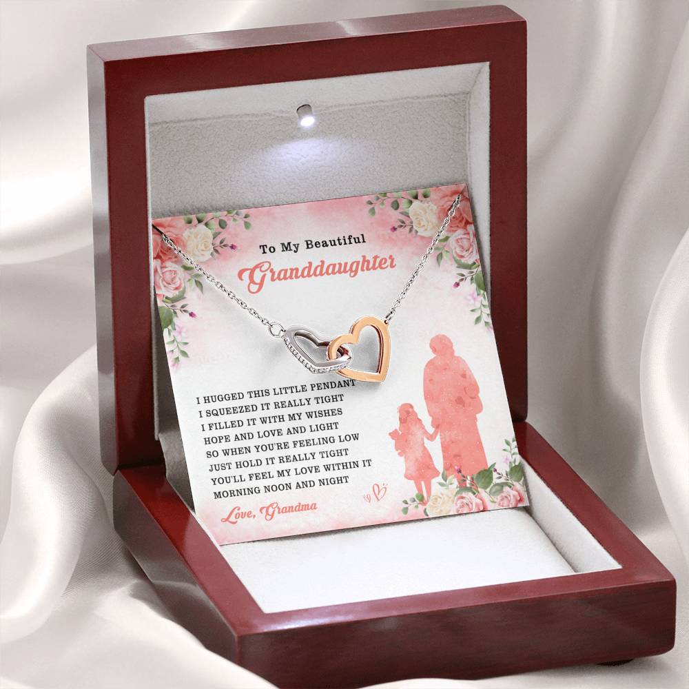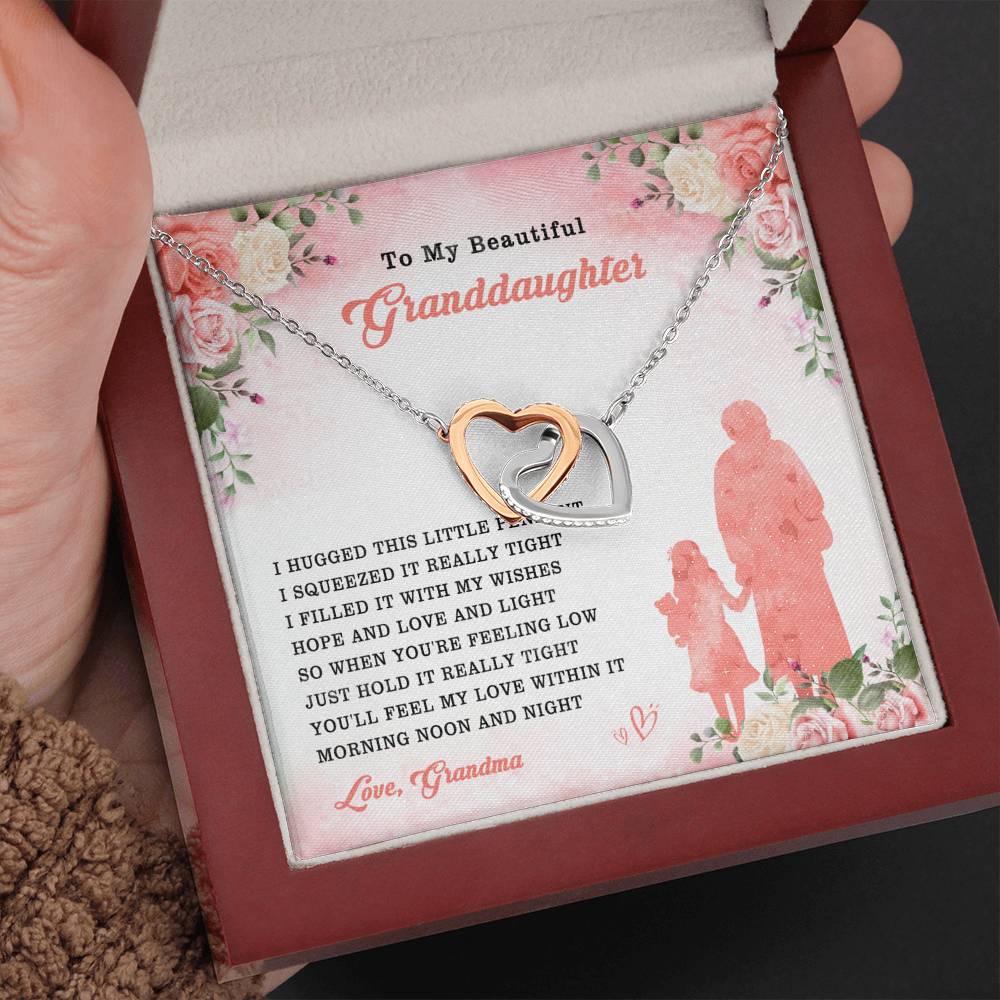 "I hugged this little pendant. I squeezed it really tight. I filled it with my wishes, hope and love and light. So when you're feeling low, just hold it really tight. You'll feel my love within it morning, noon and night."