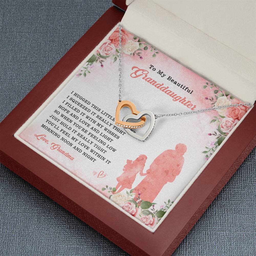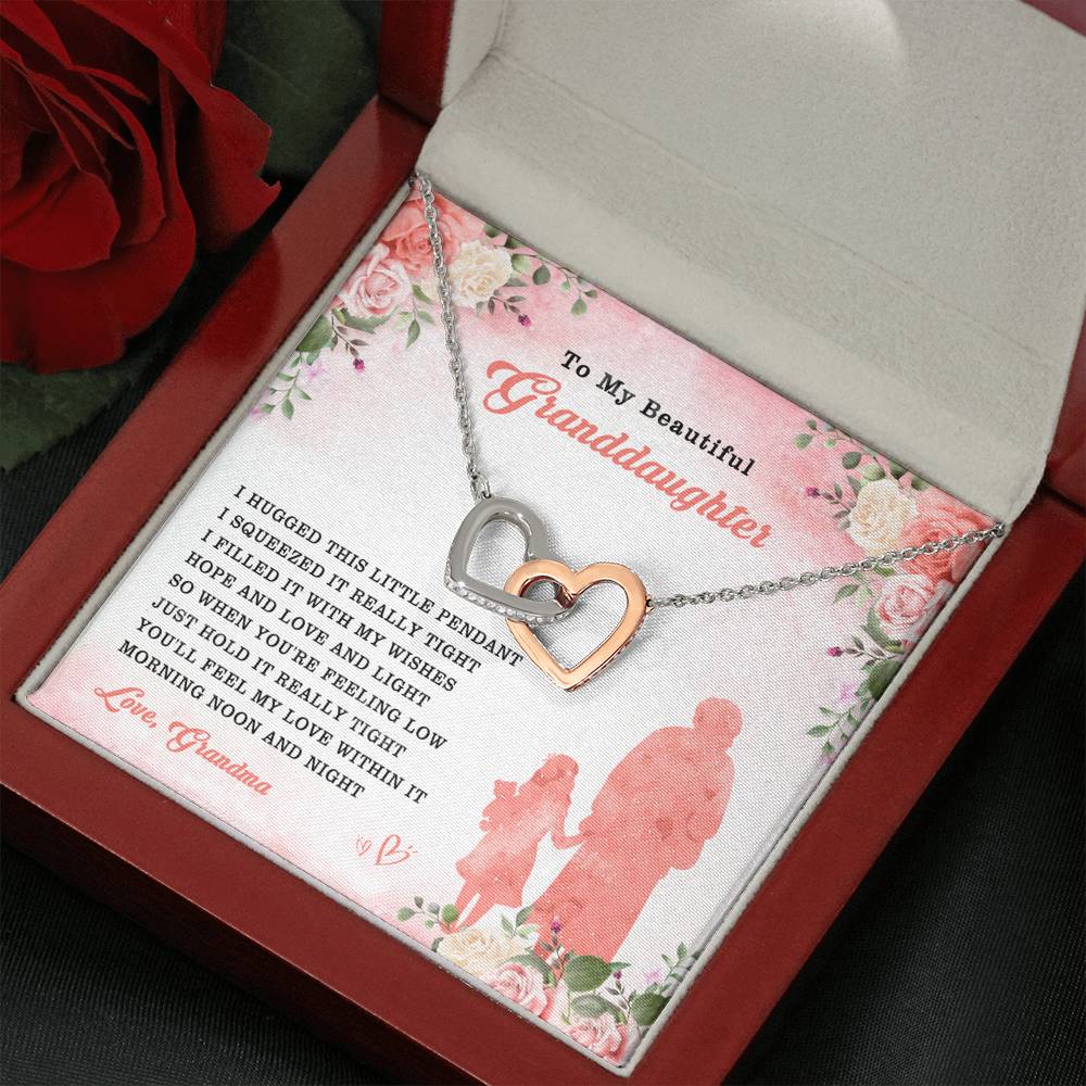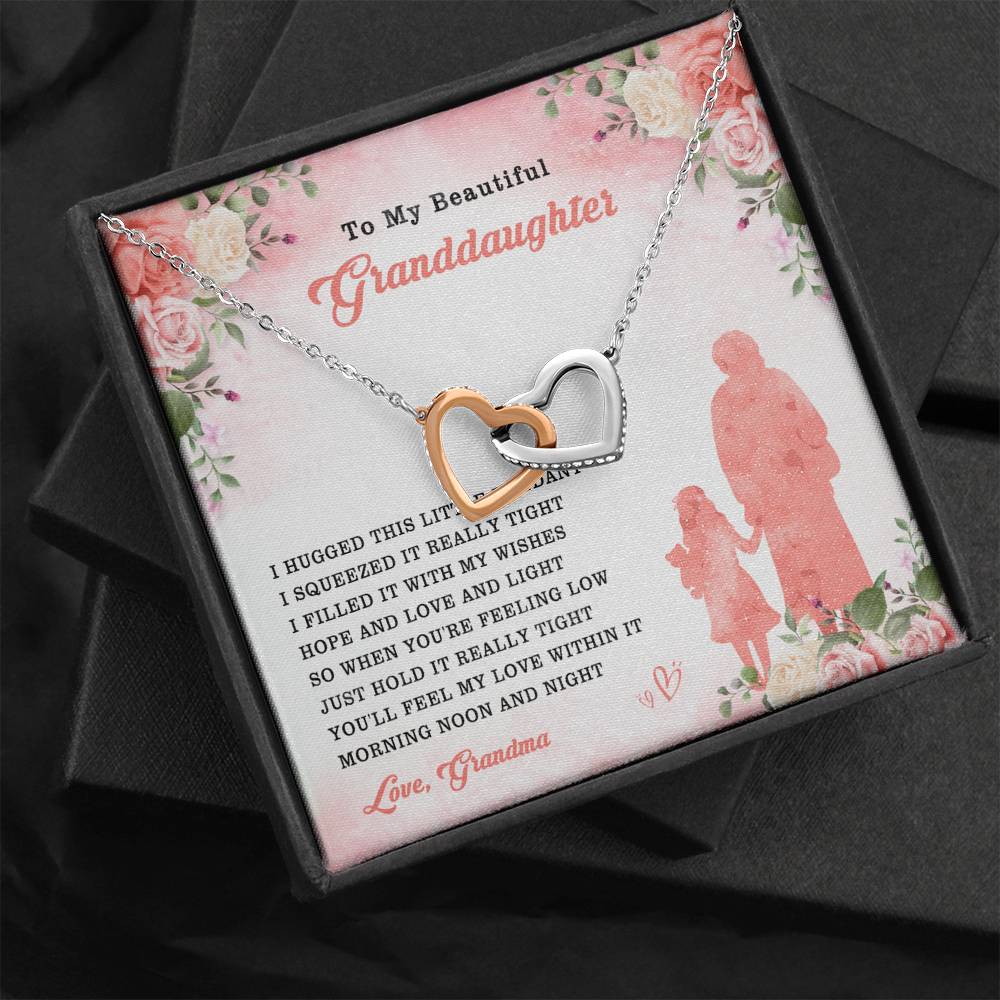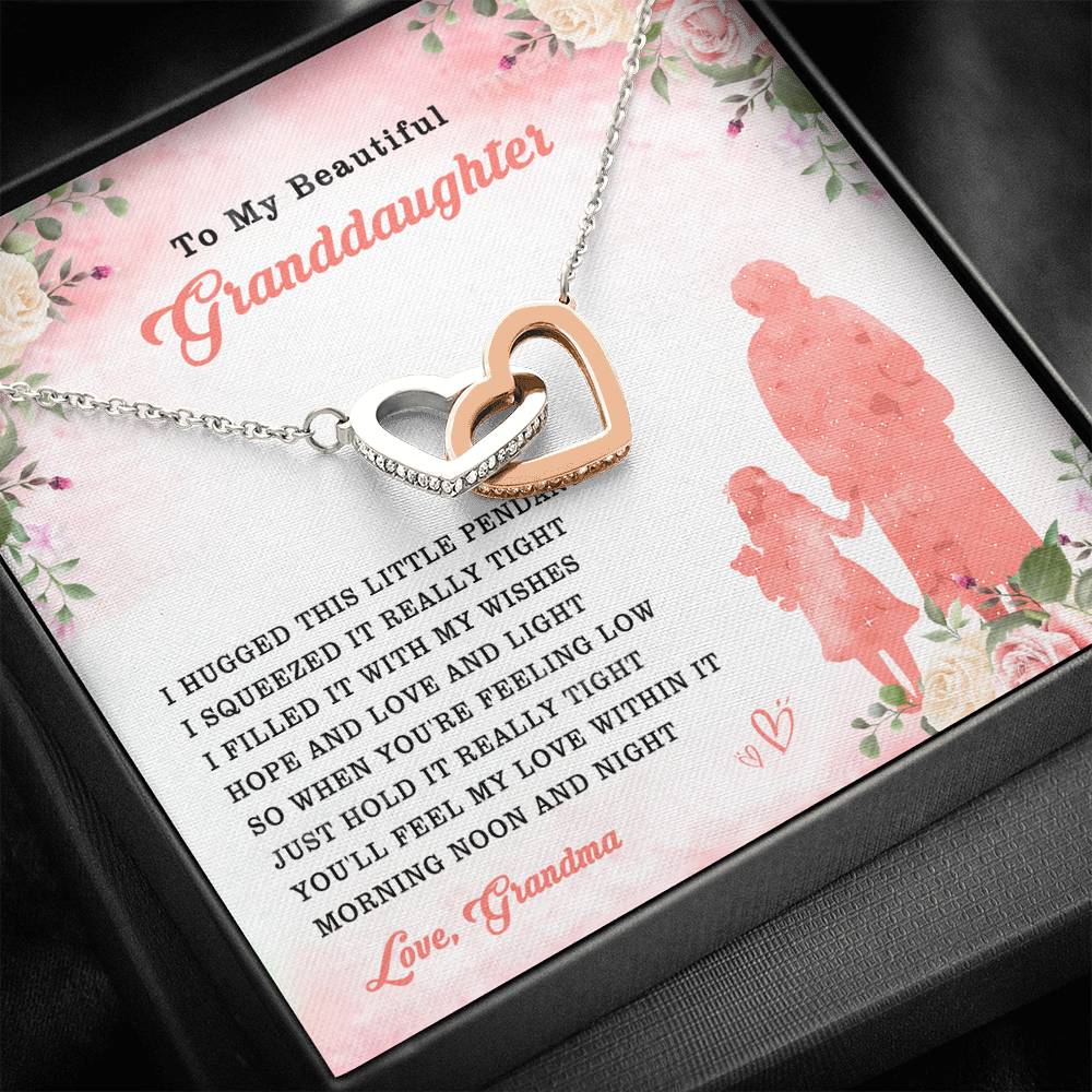 "I hugged this little pendant. I squeezed it really tight. I filled it with my wishes, hope and love and light. So when you're feeling low, just hold it really tight. You'll feel my love within it morning, noon and night."