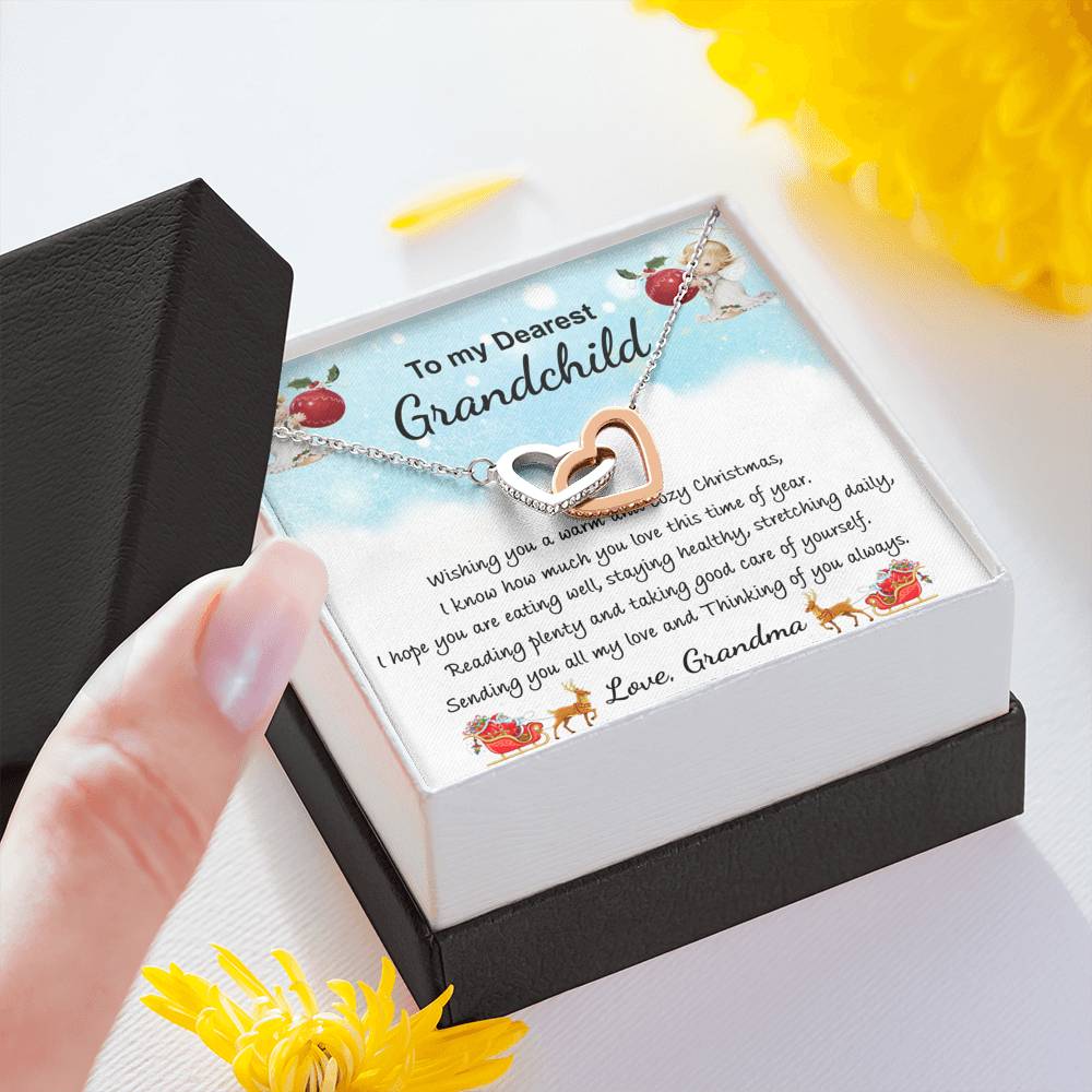 Two hearts embellished with Cubic Zirconia stones, interlocked together as a symbol of never-ending love. Made with high quality polished surgical steel. Cable chain measures 18 inches with a 4 inch extension, and fastens with a lobster clasp.