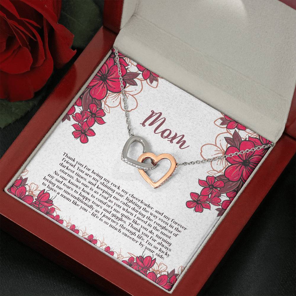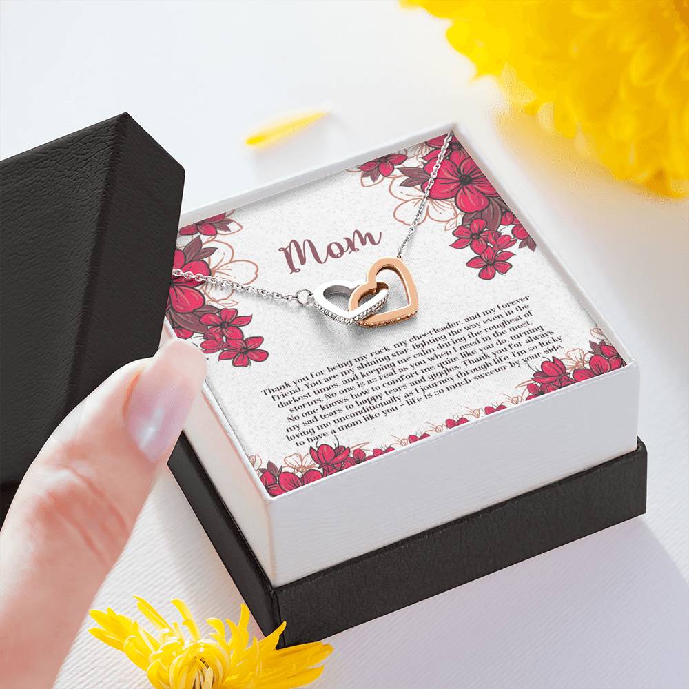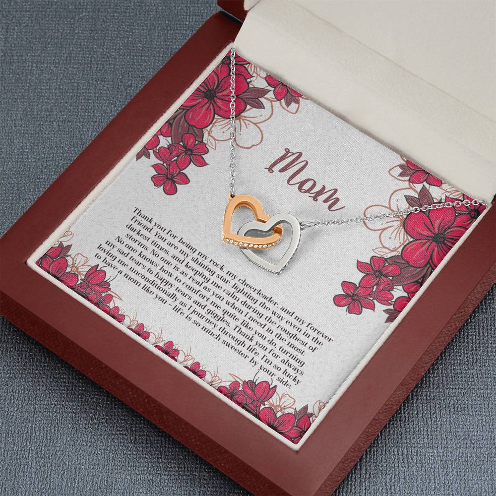 "Thank you for being my rock, my cheerleader, and my forever friend. You are my shining star, lighting the way even in the darkest times, and keeping me calm in the roughest of storms. No one is as real as you when I need you the most. No one knows how to comfort me quite like you do, turning my sad tears into happy tears and giggles. Thank you for always loving me unconditionally as I journey through life. I'm so lucky to have mom like you - life is so much sweeter by your side."