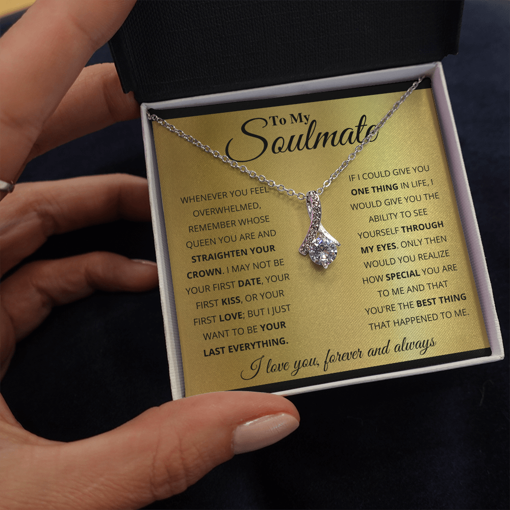 Melt her heart with this ALLURING BEAUTY necklace gift! The petite ribbon shaped pendant is finished with 14K white gold over stainless steel, and is embellished with dainty clear crystals surrounded by a sparkling 7mm round cut Cubic Zirconia.
