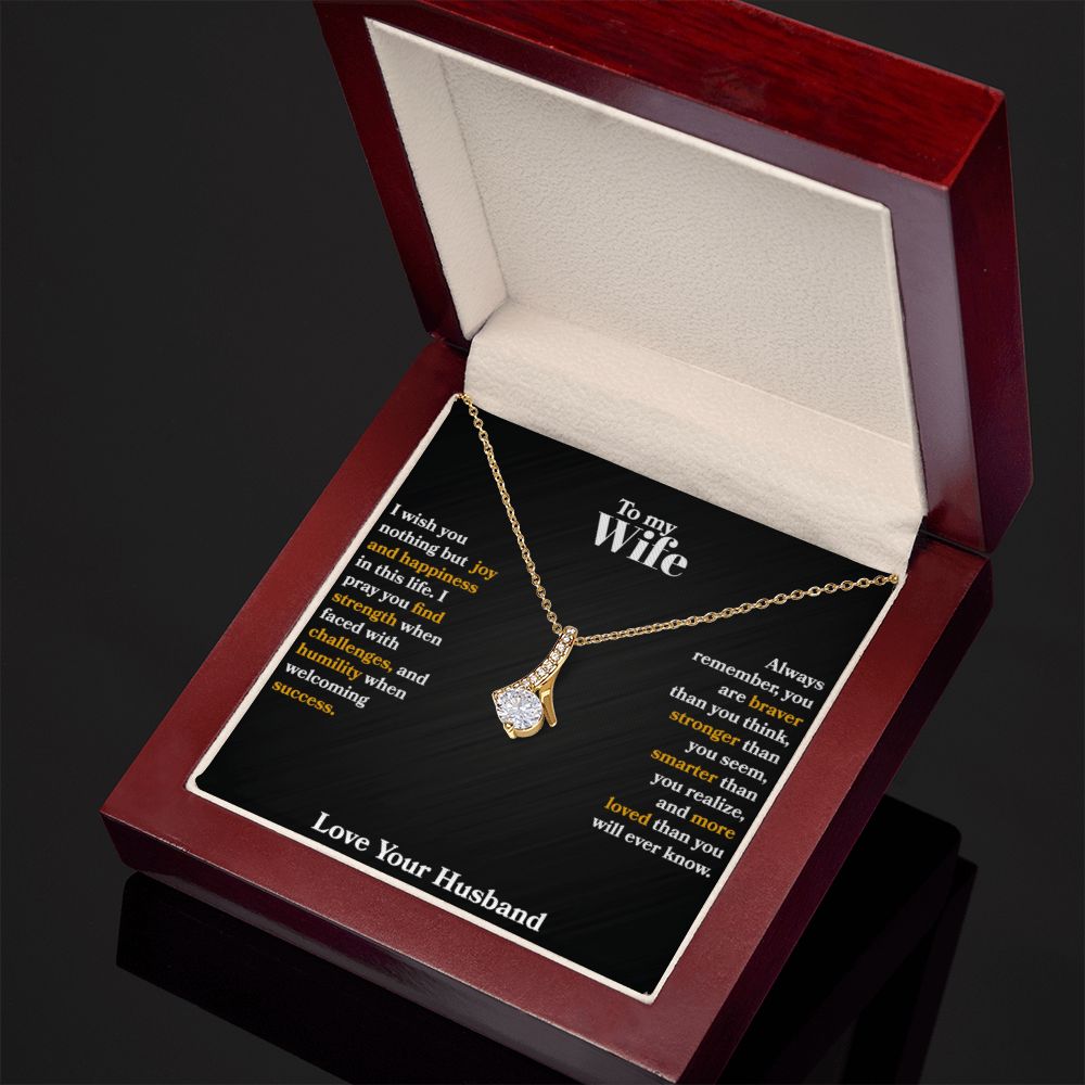 Imagine her reaction when she opens this stunning gift! The Alluring Beauty necklace features a petite ribbon shaped pendant that is sure to dazzle your special someone. Whether it's a birthday or anniversary, make sure to get her a gift she will love for years to come.